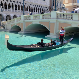 I look at my phone and see that I’m almost a mile from the hotel, so I try to route the best way back while avoiding the Vegas Strip. At this point, I’m done with crowds of people and ready to retreat into a quieter space. I look down at Buena, and she's panting. I give her some of my water, and she gently laps at the water pouring from the water bottle I hold high over her head.